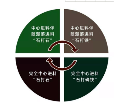 1、中心進料伴隨瀑落料“石打石”工作原理
